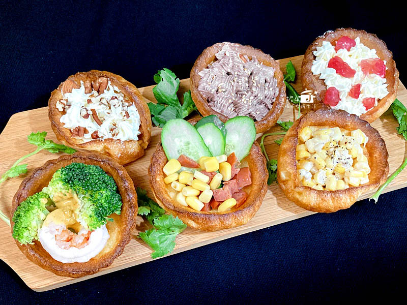 餡料可以是新鮮水果、打發的奶油、堅果、冰淇淋,或是蔬菜、沙拉、火腿等照自己的喜好搭配