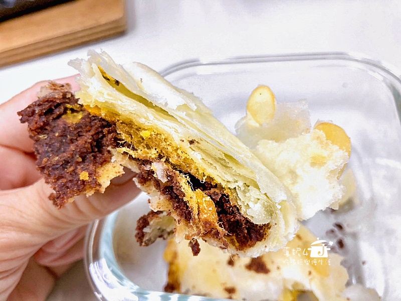 沒有放麻糬的3Q月餅,我特地放兩天再吃,手撕的餅皮層次分明,口感由酥脆變鬆軟